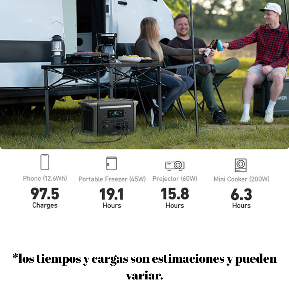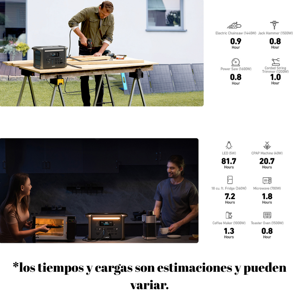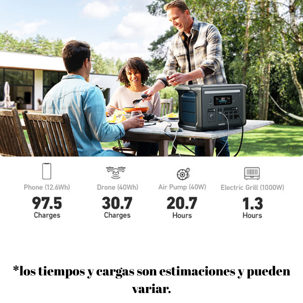 • Lo que obtienes: estación de energía portátil Anker SOLIX F1500 (1536Wh), garantía de fábrica, cable de carga de CA, cable de carga para vehículo y cable de carga solar.