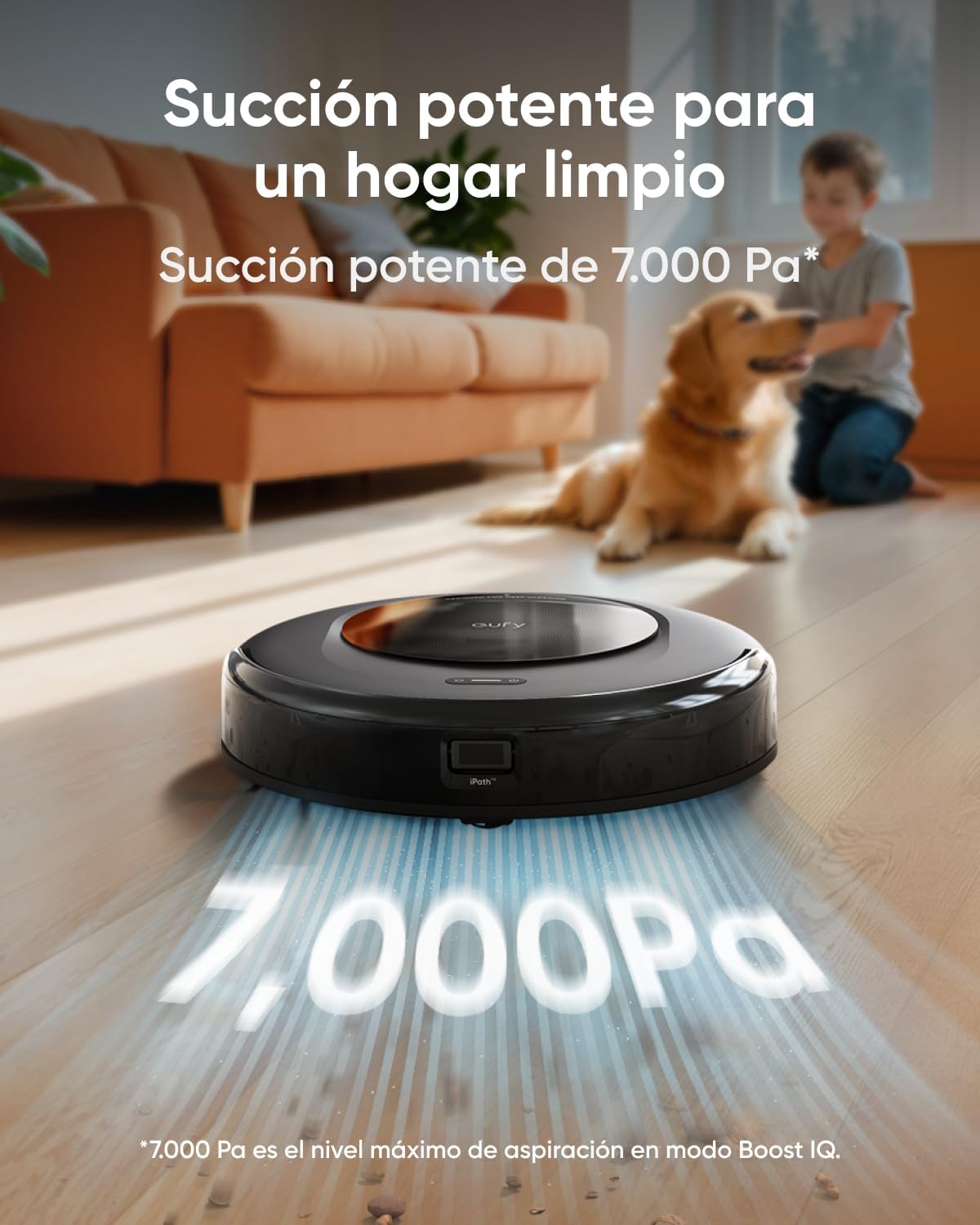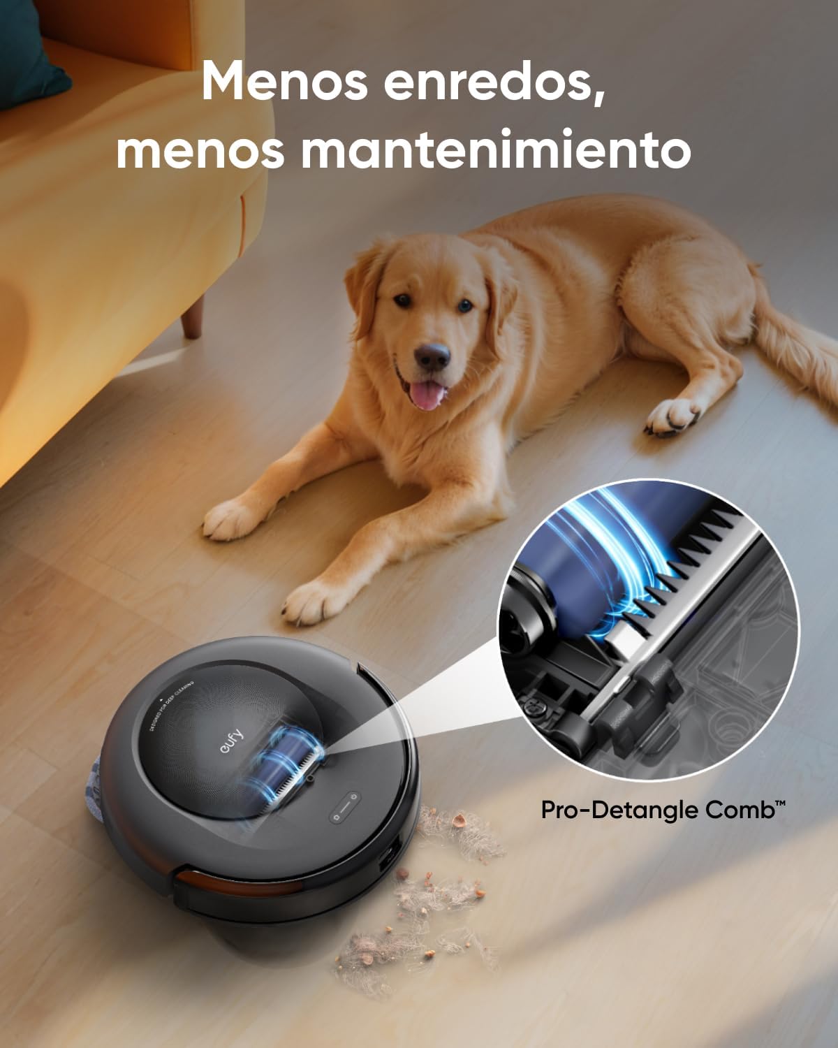 - Limpieza profunda de 7,000 Pa + no más enredos de cabello: Boost IQ ajusta automáticamente la succión hasta 7,000 Pa para levantar la suciedad incrustada, las migas y el pelo de mascotas de alfombras y suelos duros. El peine Pro-Detangle se voltea hacia abajo a mitad de la limpieza para aflojar el cabello envuelto alrededor del cepillo de rodillo, menos desenredar, succión más consistente. Nota: El rendimiento real varía según el tipo de piso y el nivel de escombro
