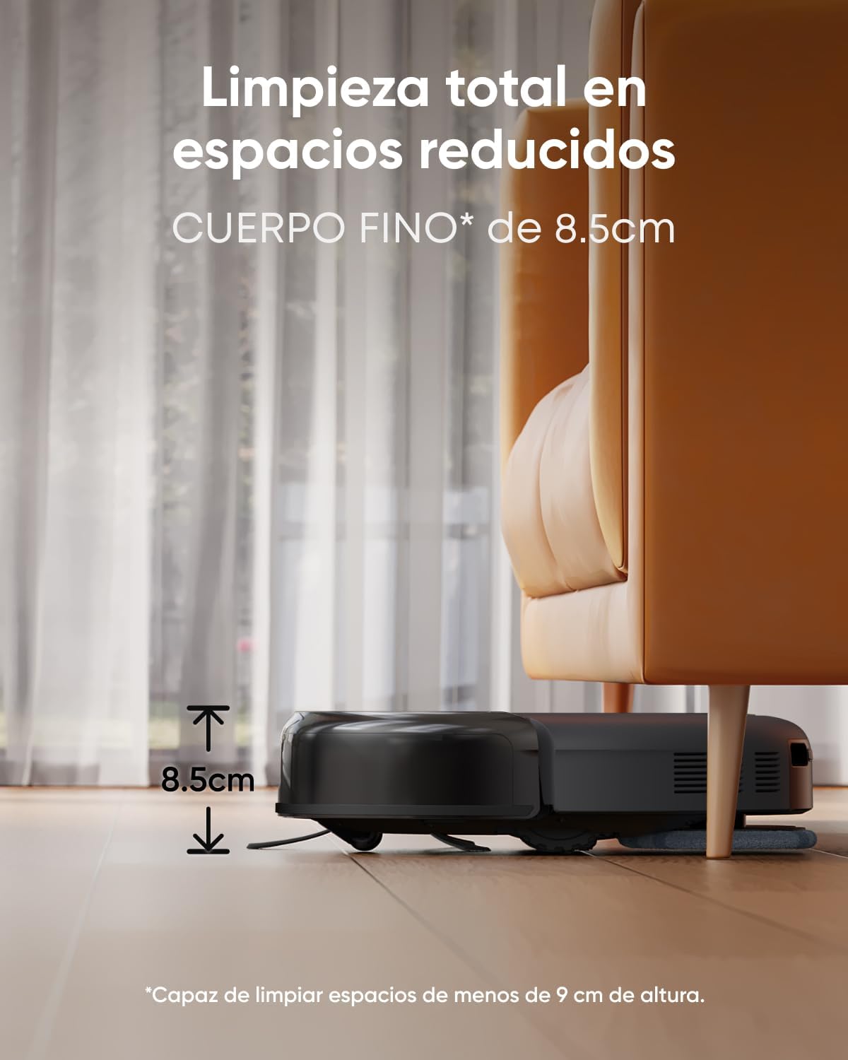 - 【Llega debajo de muebles bajos, funciona 132 minutos】Con solo 3.35 pulgadas (3.346 in) de alto, el C20 se desliza debajo de sofás, camas y armarios con tan solo 3.54 pulgadas de holgura. Funciona hasta 132 minutos en modo Estándar; luego se recarga automáticamente y se reanuda hasta que todo el piso esté terminado. iPath Laser Navigation mapea rutas eficientes y almacena hasta 3 mapas de planta para casas de varios pisos.