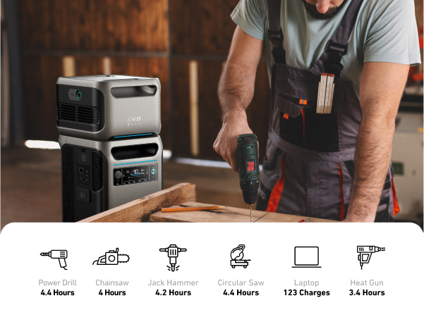 • Si necesitas más potencia, agrega otro Anker SOLIX F3800 para una salida máxima de CA de 12,000 W.