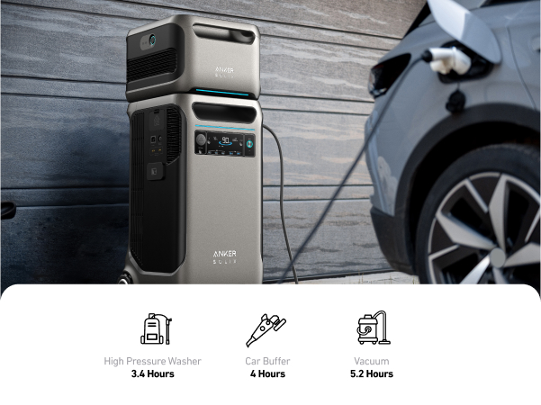 • Carga directamente tu vehículo eléctrico: no necesitas accesorios de conexión a tierra complicados, solo tu cable de carga EV y el puerto NEMA 14-50 de Anker SOLIX F3800. Carga tu vehículo eléctrico a 6,000W.