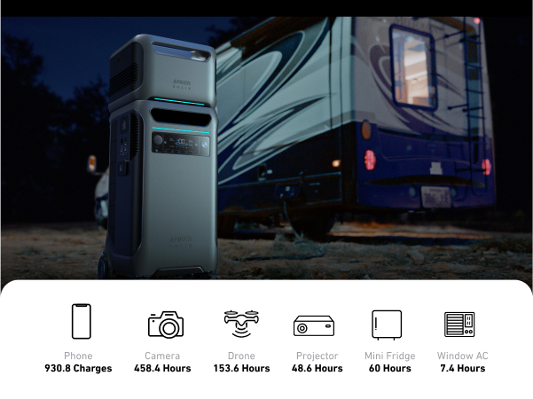 • Alimenta directamente tu RV: simplemente conecta Anker SOLIX F3800 a la entrada de alimentación de tu RV a través de los puertos NEMA 14-50 o L14-30.