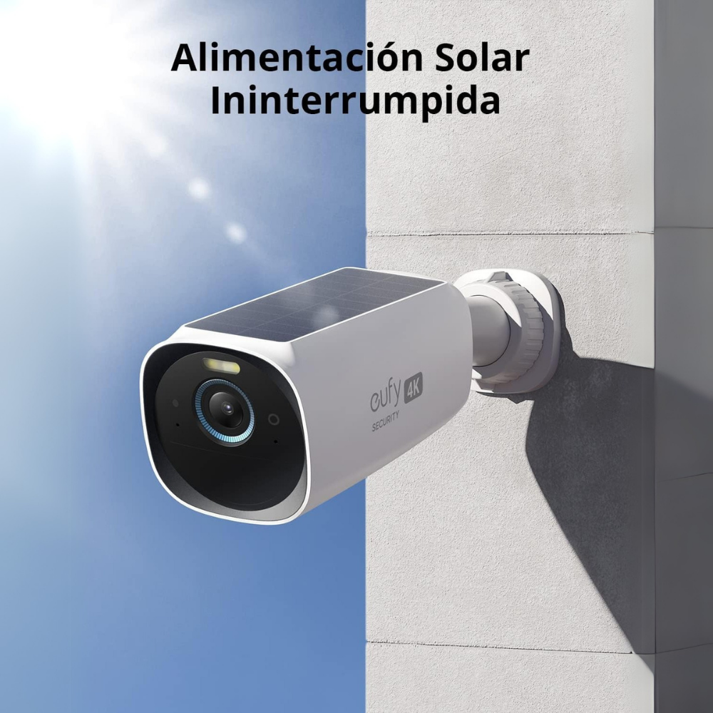 - Durabilidad de la energía: eufyCam 3 es autosuficiente solo necesita 2 horas de luz solar diaria para Forever Power.
