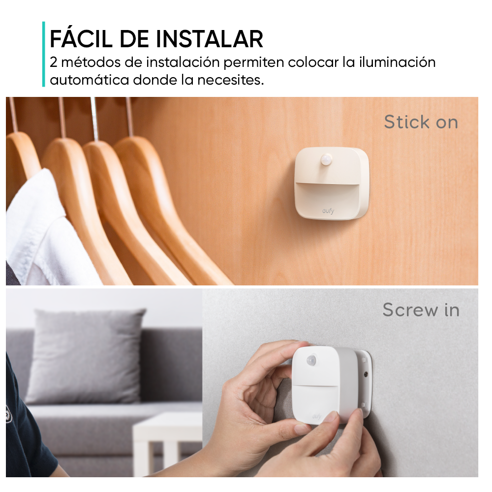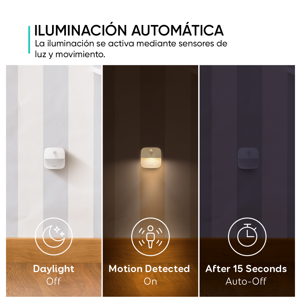 Eufy Lumi luz de noche que se pega, luz blanca cálida LED, sensor de movimiento, habitación, baño, cocina, pasillos, escaleras, bajo consumo, compacta. Paquete de 3.