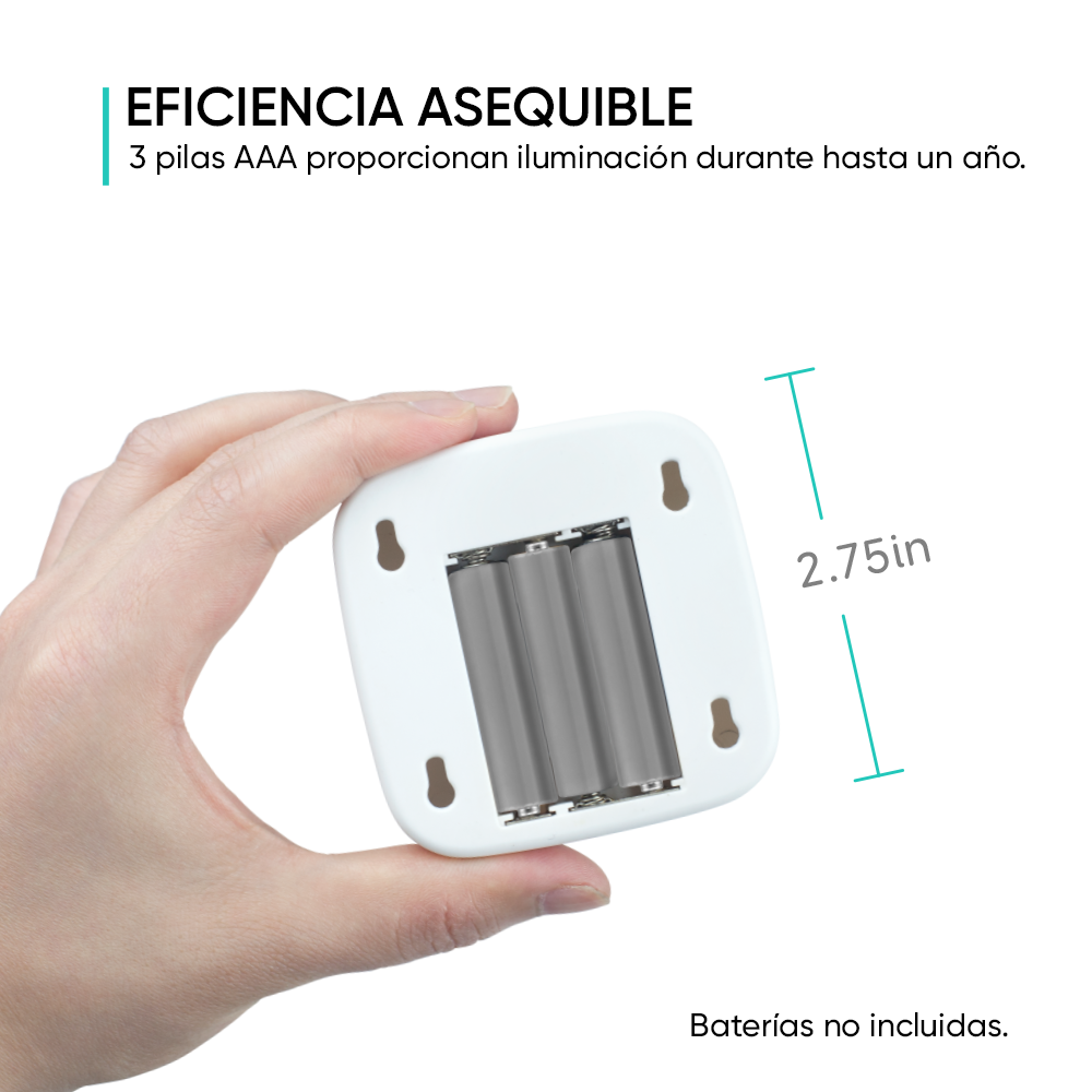 Eficiencia energética: Tres pilas AAA (no incluidas) proporcionan una iluminación suave hasta por un año.