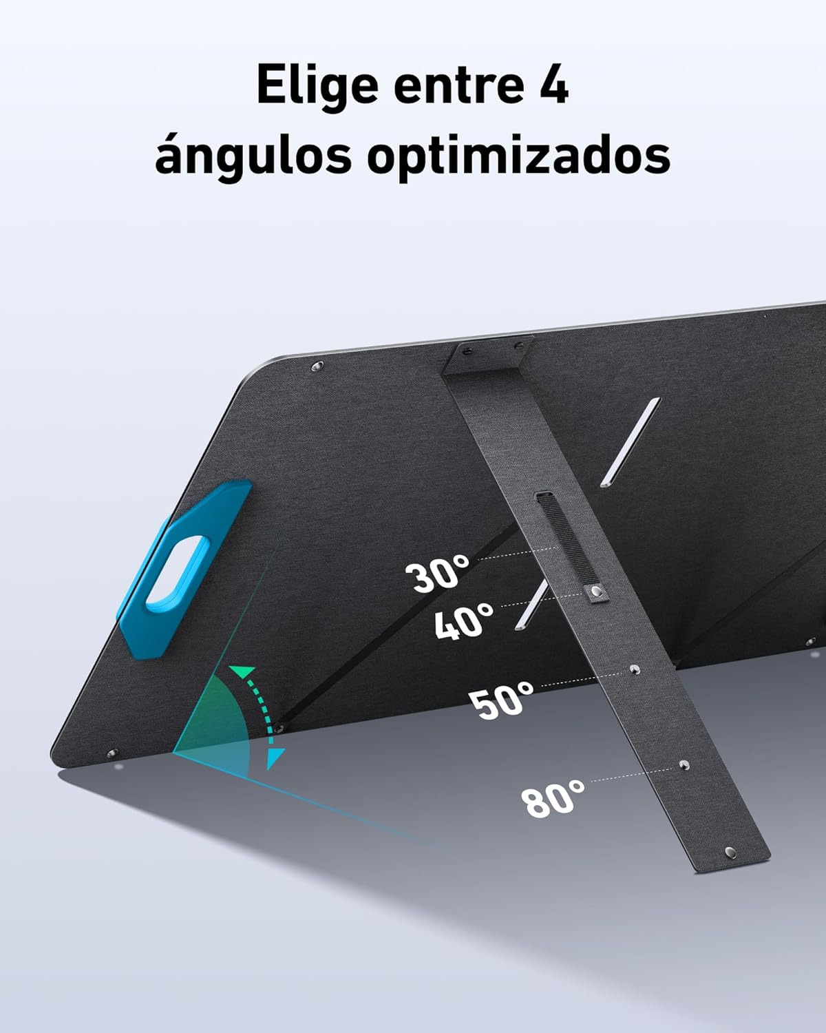 • 4 ángulos establecidos para una máxima absorción de la luz solar: no importa dónde estés, la estación o la hora del día, puede maximizar la absorción de la luz solar. Cambia fácilmente entre ángulos de 30°, 40°, 50° u 80°.