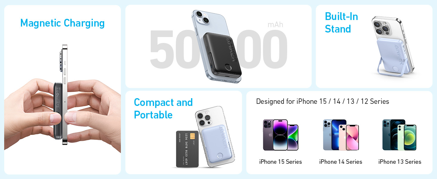 Anker – Batería magnética 622 (MagGo), cargador portátil inalámbrico, magnético y plegable de 5000 mAh y USB-C para iPhone Series 12 en adelante.
